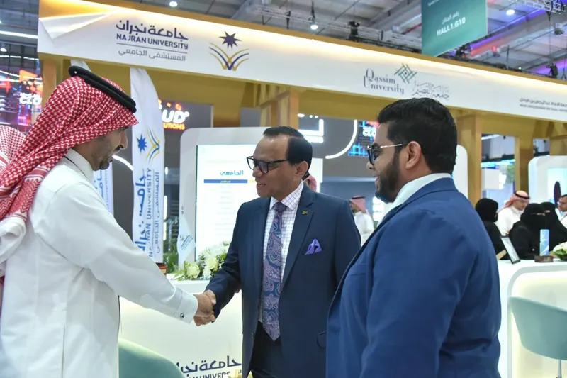 كما استقبل الجناح معالي الرئيس التنفيذي لبرنامج المستشفيات الجامعية بوزارة التعليم د.عبدالله الربيش، والسفير السريلانكي لدى المملكة، وعدداً من المسؤولين والقيادات الصحية، حيث اطّلعوا على أحدث مشاريع الجامعة في التحول الرقمي الطبي، وتوطين التقنيات الصحية، وتكامل البيانات الدوائية.